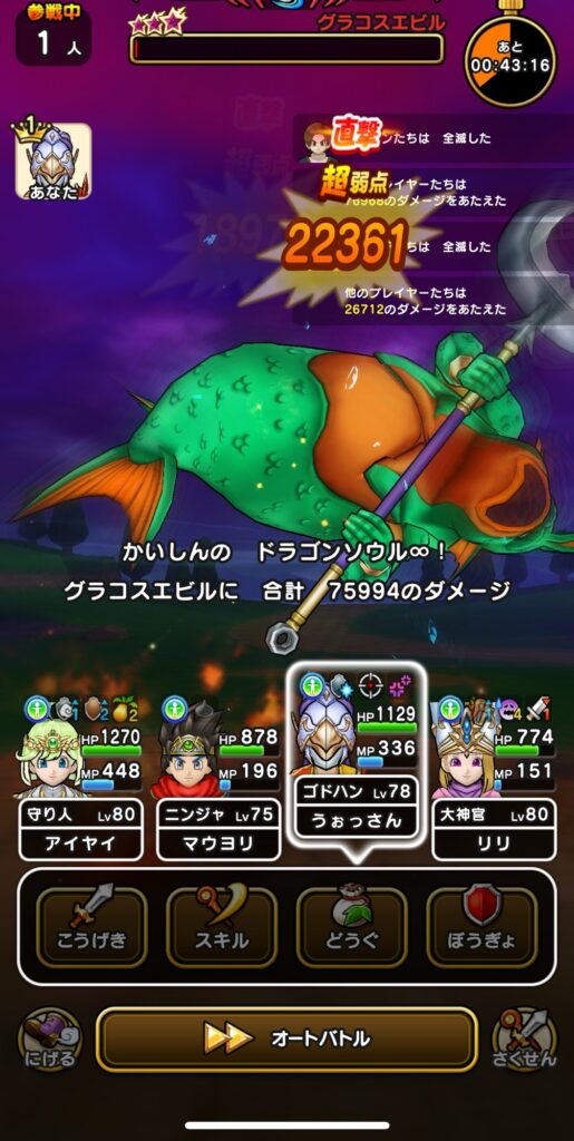 出張続きでドラクエウォークもぼちぼちやったけん今日はメガモン討伐